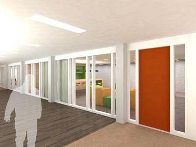 | Umstrukturierung bestehender Untersuchungs- und Behandlungsräume zum Ausbildungszentrum. Das vorhandene Material- und Farbspektrum des Interieurs wurde aufgegriffen und ergänzt. Insgesamt zeichnet sich der Umbau durch seine großzügige Räumlichkeit aus. Die freikommenden Bestrahlungsbunker wurden in das neue Nutzungskonzept eingebunden. |