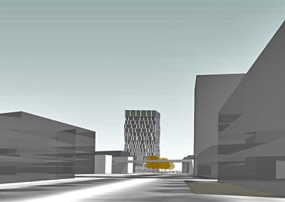 | Der Hotelneubau formt die wichtigste Landmarke in der neuen Siedlung de Waalsprong in Lent. Der Turm markiert den infrastrukturellen Knotenpunkt mit dem Bahnhof an der Strecke zwischen Arnheim und Nimwegen. Neben der Hotelfunktion umfasst das Raumprogramm auch ein Kongresszentrum. |