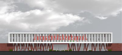 | Der neue Hauptsitz des Maschinenherstellers Ingersoll Rand umfasst einen Showroom, Büroräume, die Werkshalle und einen Werkhof. Die gestalterischen Vorgaben des Gewerbegebietes Rijnhoek in Bodegraven verlangen die Integration der begrenzenden Backsteinmauern in den Entwurf. Im Südwesten, zur Autobahn hin, befindet sich der repräsentative Teil mit Showroom, Empfang und Besuchereingang. Die Produktions- und Logistikräume sowie der Werkhof sind nach Nordosten orientiert. |