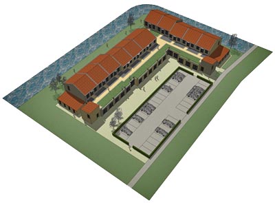 | Der Neubau vereint Pflegewohnungen im Erdgeschoss mit Starterwohnungen im Obergeschoss. Der Pflegebereich umfasst vier Wohngruppen mit jeweils 7 Bewohnern. Die tieferen Grundrisse des Erdgeschosses ermöglichen eine Gallerieerschließung der 11 Wohnungen im Obergeschoss. Städtebaulich fügt sich der Entwurf in das angestrebte kleinteilige Bild des Neubauviertels. |