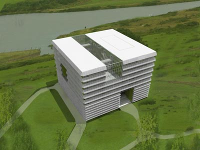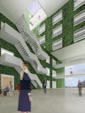 | Der Entwurf zum zweiten Lehrgebäude auf dem neuen Campus der Wageningen Universität ist eine Ikone der Nachhaltigkeit im Umgang mit der Erde und dem Leben. Der Neubau ergänzt das Ensemble der bestehenden bildhaften Gebäude Forum und Atlas um einen transluzenten Baukörper, welcher das Licht der Sonne in Energie umsetzt. Im Inneren sorgen grüne Wände für frische, sauerstoffreiche Luft und das Exterieur bedient sich des Prinzips von Kaktusgewächsen, um die Fassaden zu verschatten. |