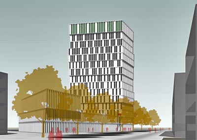 Der Hotelneubau formt die wichtigste Landmarke in der neuen Siedlung de Waalsprong in Lent. Der Turm markiert den infrastrukturellen Knotenpunkt mit dem Bahnhof an der Strecke zwischen Arnheim und Nimwegen. Neben der Hotelfunktion umfasst das Raumprogramm auch ein Kongresszentrum.