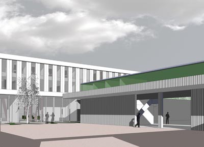 | Der neue Hauptsitz des Maschinenherstellers Ingersoll Rand umfasst einen Showroom, Büroräume, die Werkshalle und einen Werkhof. Die gestalterischen Vorgaben des Gewerbegebietes Rijnhoek in Bodegraven verlangen die Integration der begrenzenden Backsteinmauern in den Entwurf. Im Südwesten, zur Autobahn hin, befindet sich der repräsentative Teil mit Showroom, Empfang und Besuchereingang. Die Produktions- und Logistikräume sowie der Werkhof sind nach Nordosten orientiert. |