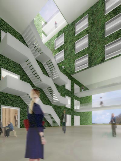 Der Entwurf zum zweiten Lehrgebäude auf dem neuen Campus der Wageningen Universität ist eine Ikone der Nachhaltigkeit im Umgang mit der Erde und dem Leben. Der Neubau ergänzt das Ensemble der bestehenden bildhaften Gebäude Forum und Atlas um einen transluzenten Baukörper, welcher das Licht der Sonne in Energie umsetzt. Im Inneren sorgen grüne Wände für frische, sauerstoffreiche Luft und das Exterieur bedient sich des Prinzips von Kaktusgewächsen, um die Fassaden zu verschatten.