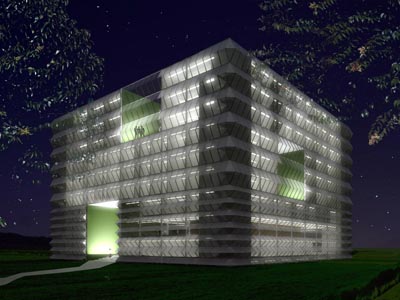| Der Entwurf zum zweiten Lehrgebäude auf dem neuen Campus der Wageningen Universität ist eine Ikone der Nachhaltigkeit im Umgang mit der Erde und dem Leben. Der Neubau ergänzt das Ensemble der bestehenden bildhaften Gebäude Forum und Atlas um einen transluzenten Baukörper, welcher das Licht der Sonne in Energie umsetzt. Im Inneren sorgen grüne Wände für frische, sauerstoffreiche Luft und das Exterieur bedient sich des Prinzips von Kaktusgewächsen, um die Fassaden zu verschatten. |